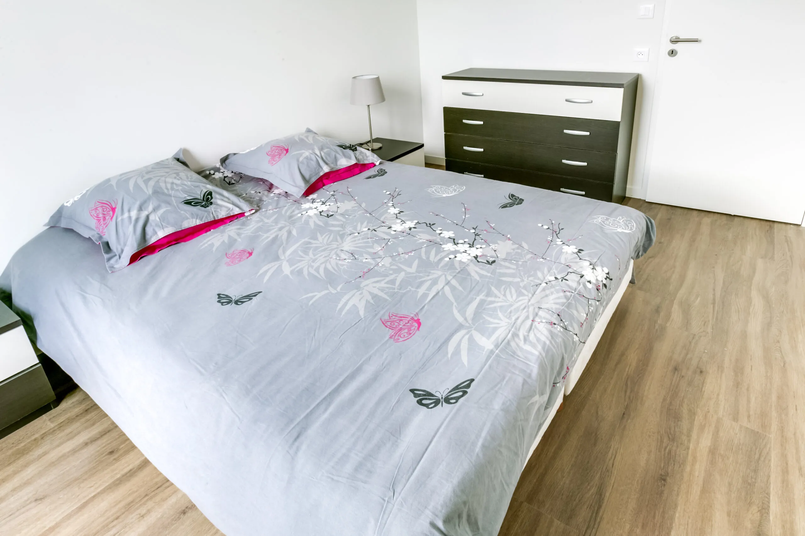 Model apartments are offered by real estate developers who are building new homes; in order to help their clients project themselves more easily, furniture rental is an adequate solution. A large real estate developer has therefore called upon Homat to furnish sample apartments in Paris and the provinces. Discover the furniture and appliances of this model apartment in Paris: 3-seater sofa, armchair, TV 32′, TV stand, coffee table, floor lamp, table and chairs, stove, washing machine, dishwasher, double bed 160×200 cm, bed linen, bedside tables, bedside lamps, chest of drawers, bed 90×190 cm, bed linen set, bedside table, lamp and chest of drawers.