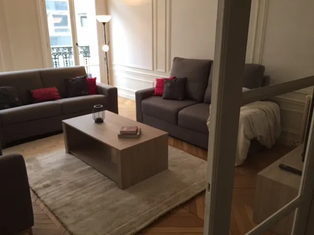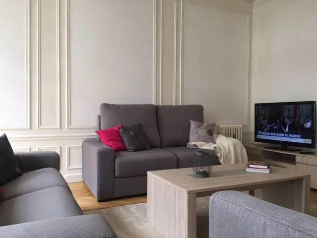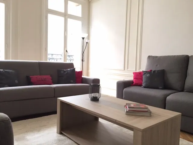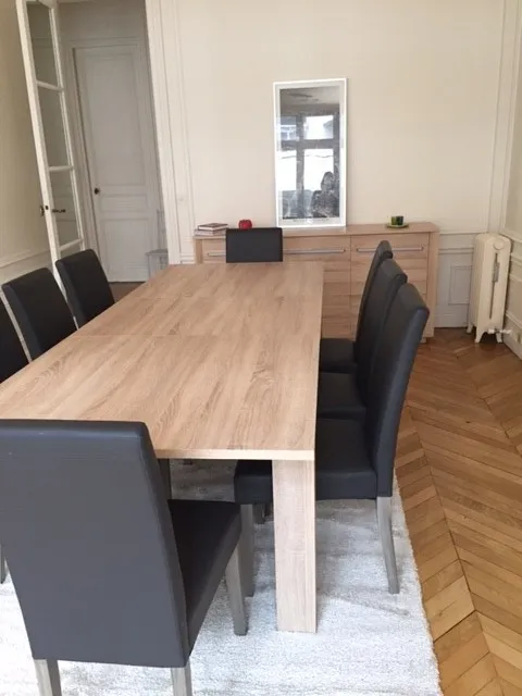 We proceeded to the total arrangement for this beautiful Haussmannian apartment: rent of convertible sofas, chairs, coffee table, sofa end table, street lamps, TV 42′, TV cabinet, carpet, table and chairs, buffet, tablecloth, dishes for 6 people, kitchen table and chairs, refrigerator/freezer 300l, washing and drying machine, dishwasher, microwave, kettle, electric coffee maker, toasters, blender, foot mixer, drummer, steamer, pressure cooker, stewpot, salad spinner, cake moulds, measuring glass, trash can, broom, shovel and brush, bucket, mop and broom brush, double bed 160×200 cm with bed linen, bedside tables and lamps, convenient, supporting, hangers, mirror, safe, single beds 90×190 cm with bed linen, bedside tables and lamps, convenient, bathroom linen, towel rack, bathroom trash can, bathroom furniture, iron and board, vacuum cleaner, hair dryer, hair straightener and clothes line.