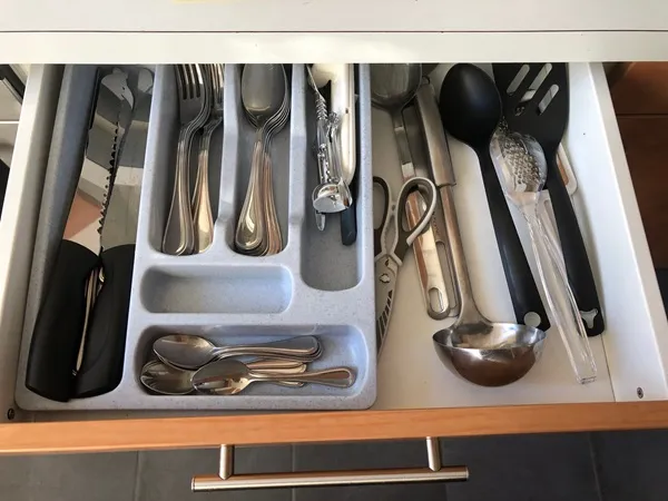 This set of dishes includes everything you need to cook (pots, pans, oven dishes), serve and eat (plates, cutlery).