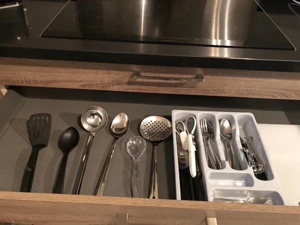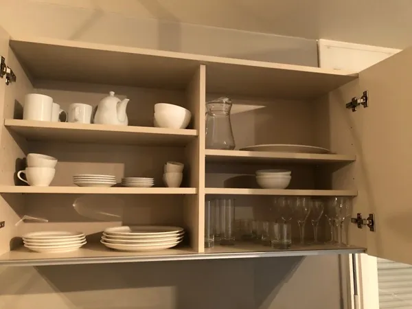 This set of dishes includes everything you need to cook (pots, pans, oven dishes), serve and eat (plates, cutlery).