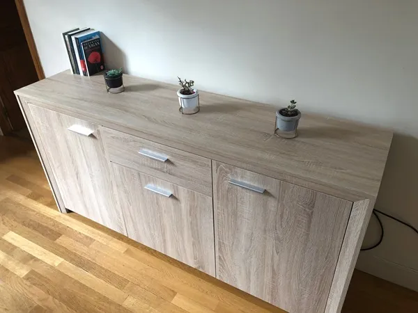 The Antigone TV stand has 2 sliding doors. Its dimensions are 150 (l) x 42 (p) x 52 (h) cm.
