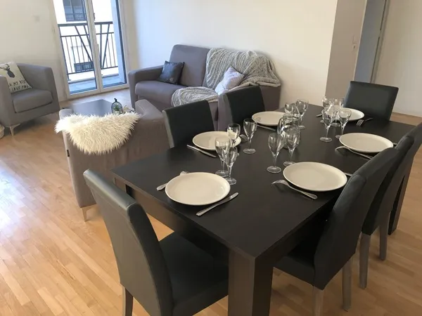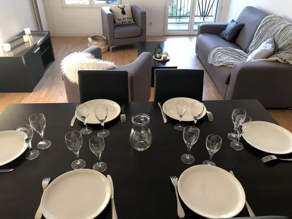 We collected the keys from the real estate agency and installed all the furniture before his arrival in France. The appliances were connected (and covered by warranty throughout the rental period) and the beds were made.