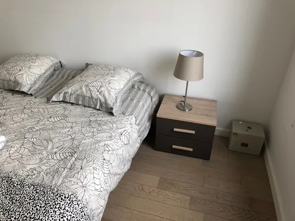 This bedside table with its light tones, offers a nice harmony for your room.