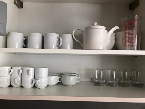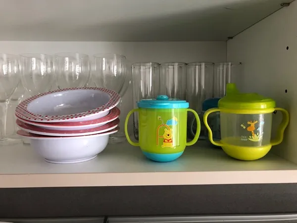 This set of dishes includes everything you need to cook (pots, pans, oven dishes), serve and eat (plates, cutlery).