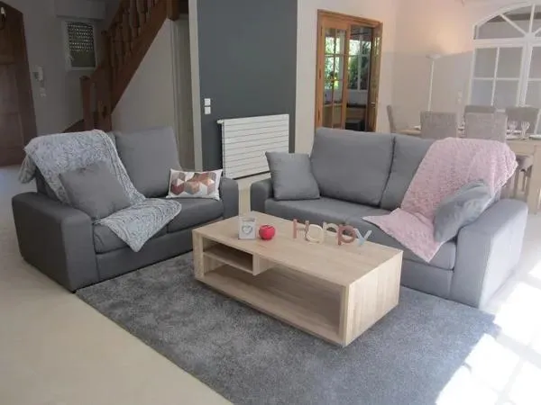 Vous êtes expatriés en France ? Tout comme Bill, vous travaillez sur Paris et vos enfants sont inscrits au lycée international de Saint Germain en Laye ? Vous avez trouvé une maison pour accueillir votre famille ? Il ne reste plus qu’à louer des meubles pour un ou deux mois, le temps que votre container arrive de Chicago. Suivez l’installation de Bill au Vésinet qui nous a loué des meubles pour une arrivée sereine ! Canapé 3 places, canapé 2 places, table basse, table de bout de canapé, lampe à poser, lampadaire, TV 42′, meuble télé, tapis, table et chaises, vaisselle pour 6 personnes, lit double 160×200 cm, parure de lit et change pour lit double, table de chevet, lampe de chevet, radio réveil, commode, portant, cintres, corbeille à papier, miroir, lit simple 90×190 cm, parure de lit et change pour lit simple, table de chevet et lampe, commode, linge de toilette, tapis de bain, poubelle de salle de bains, porte brosse à dents, panier à linge, fer à repasser, planche à repasser, aspirateur, sèche-cheveux, table de jardin et chaises.