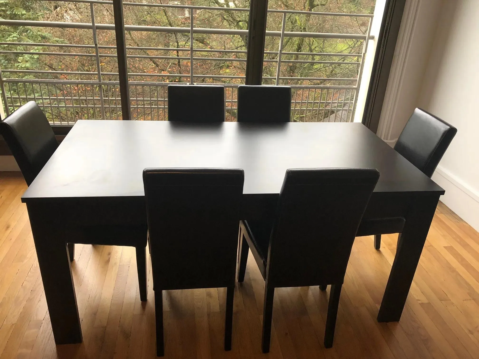 Nous avons meublé sa pièce de vie avec un canapé convertible 3 places, deux fauteuils, une table basse, une télévision 32′, un meuble télé, une table, 6 chaises et un buffet.