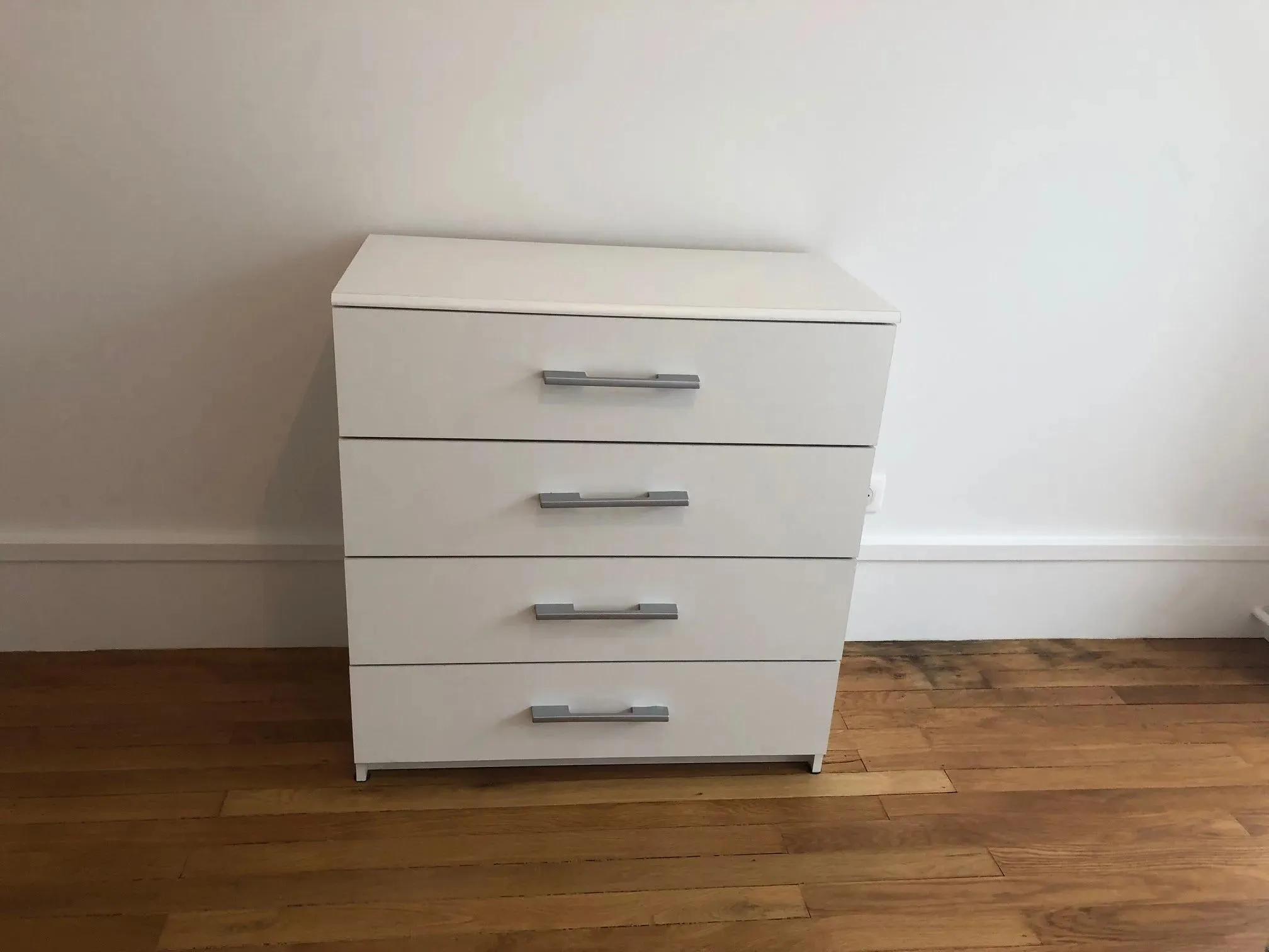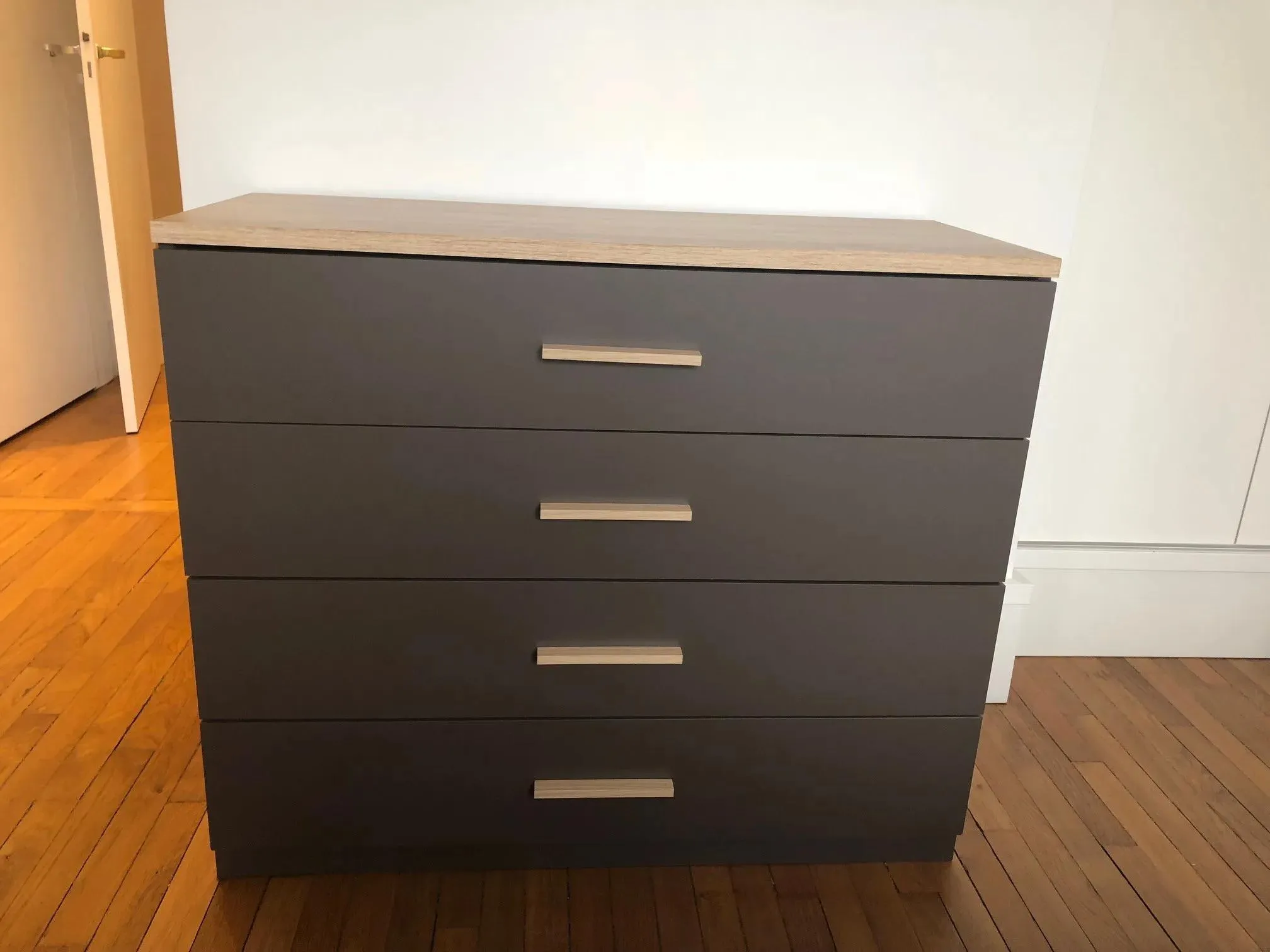 Dans la chambre enfant, nous avons loué la commode, l’armoire, le bureau et la chaise.
