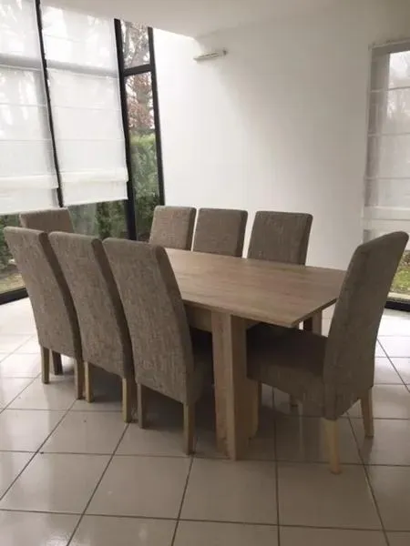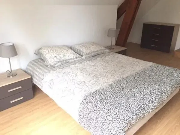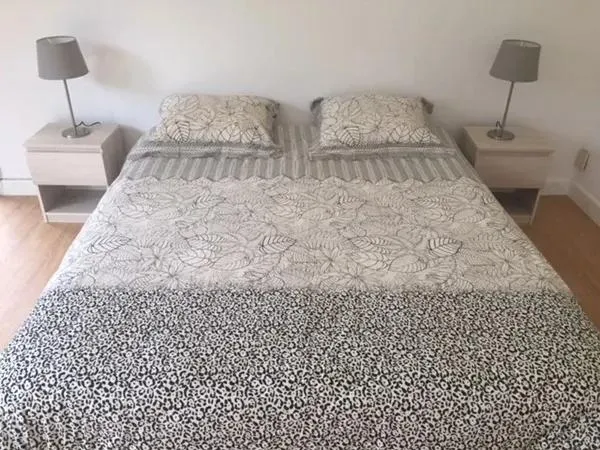 - Pour les chambres adultes : lits doubles 160×200 cm avec parures de lit, tables de chevet et lampes, commode, miroir.