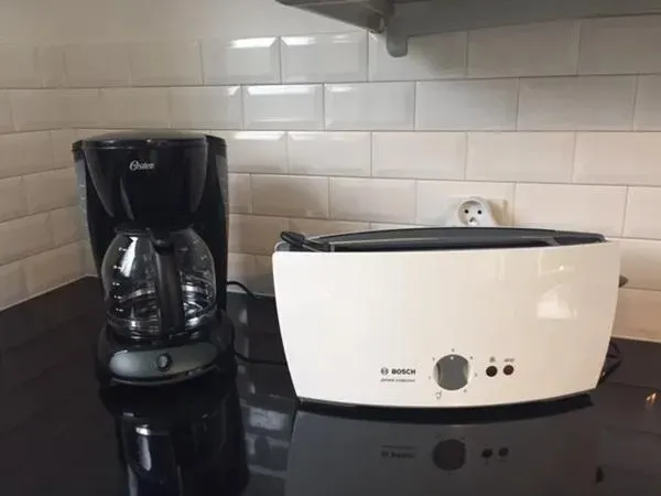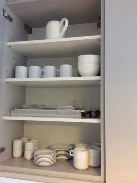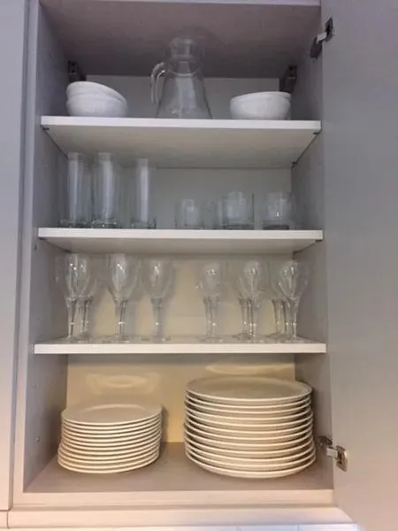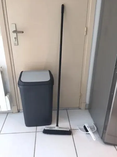 - Pour la cuisine : vaisselle pour 6 personnes, lave-vaisselle, micro-ondes, bouilloire, cafetière, grille-pains, poubelle, balai, pelle et balayette, seau, serpillère et balai brosse.
