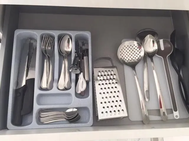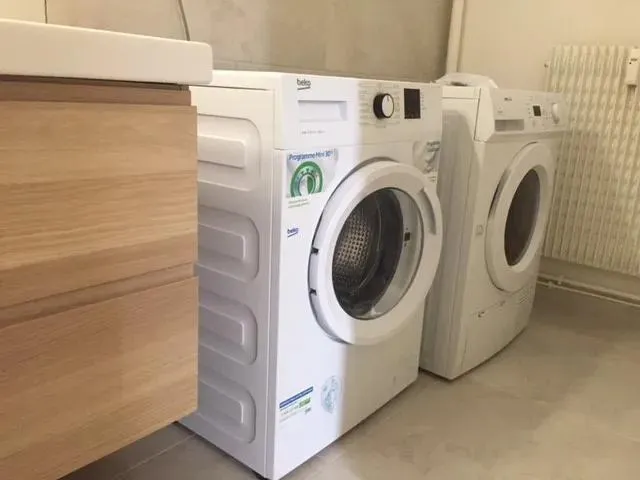 Nous avons meublé son appartement avec un canapé convertible 3 places, un fauteuil, une table basse, des lampadaires, une télévision 32′, un meuble télé, 1 table et 6 chaises. Dans la cuisine, en plus de la vaisselle et ustensiles pour 4 personnes et de la poubelle, balai, pelle et balayette, nous avons loué l’électroménager suivant : réfrigérateur/congélateur 250 litres, lave-linge, sèche-linge et micro-ondes. Pour la chambre adulte, nous avons loué un lit double avec parure de lit et change, deux tables de chevet et lampes, une commode, un portant et des cintres ; pour les chambres enfants, nous avons loué deux lits simples 90×190 cm avec parures de lit et changes, tables de chevet et lampes, commodes, portant et cintres. Nous avons également loué linge de toilette, fer à repasser et table, ainsi qu’aspirateur.