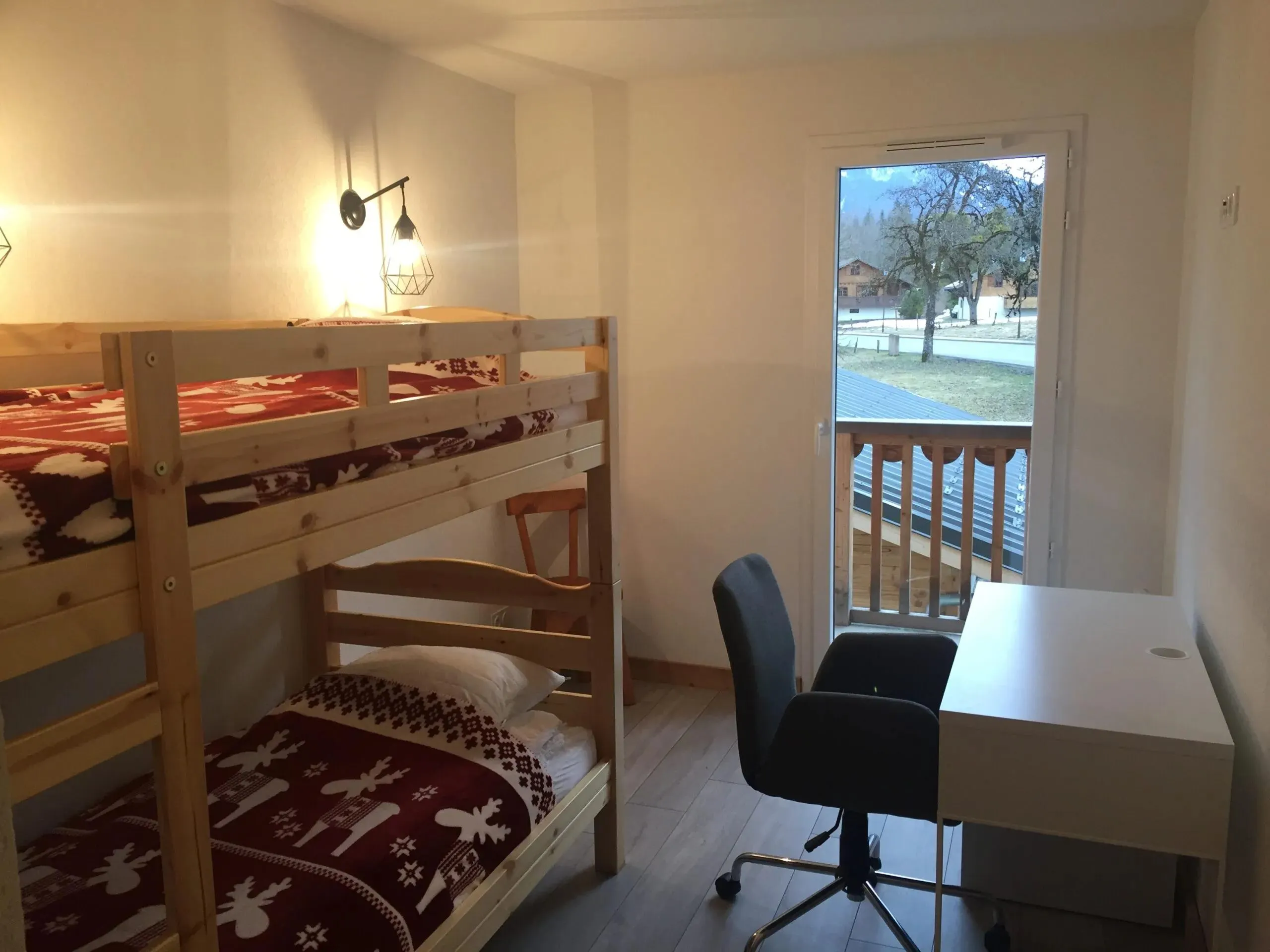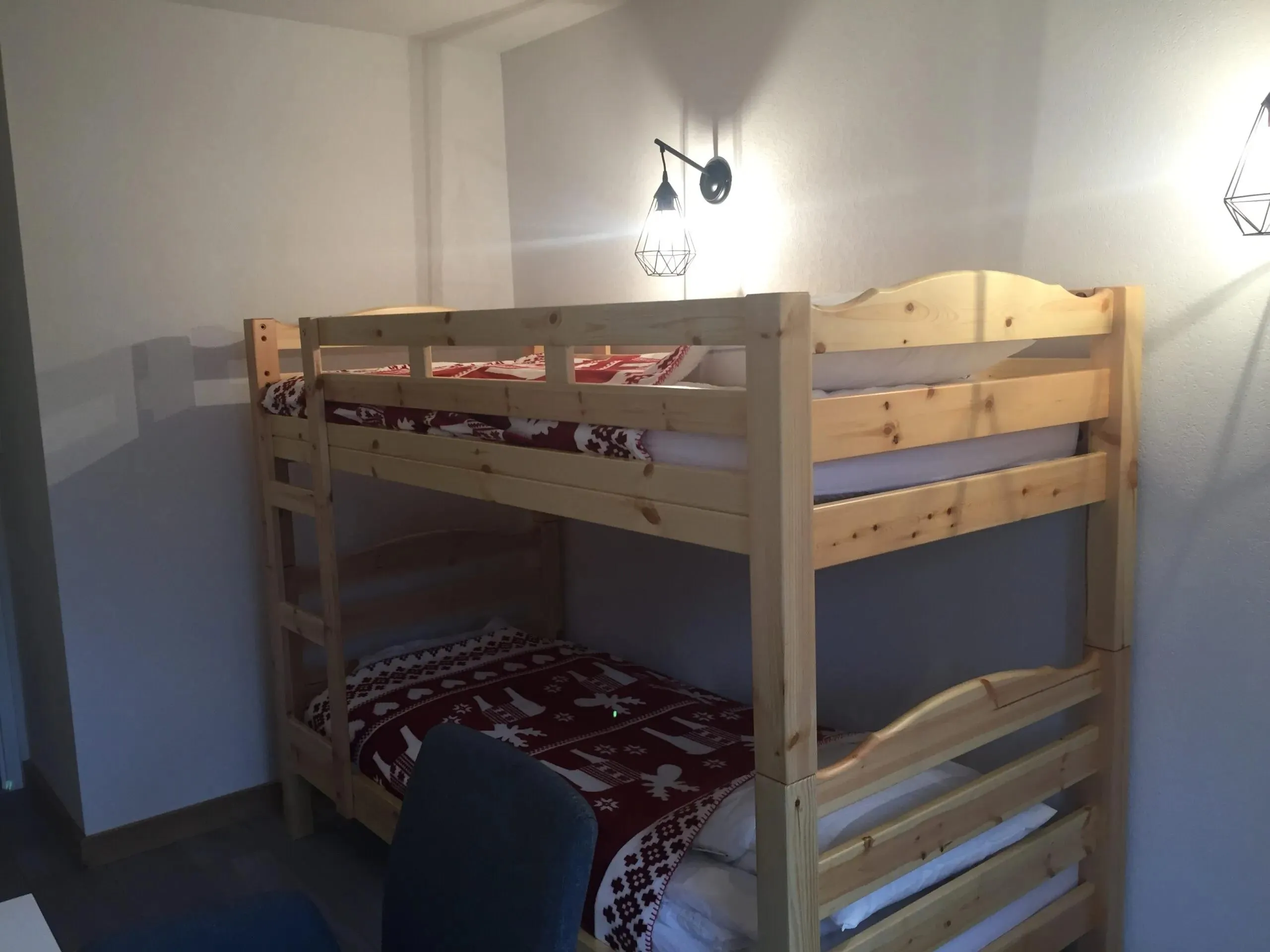 Puis chaque chambre adulte (deux au total), a eu droit à un lit double, 2 tables de chevet et une télévision. Quant à la chambre enfant, elle a accueilli un lit superposé avec bureau et chaise.